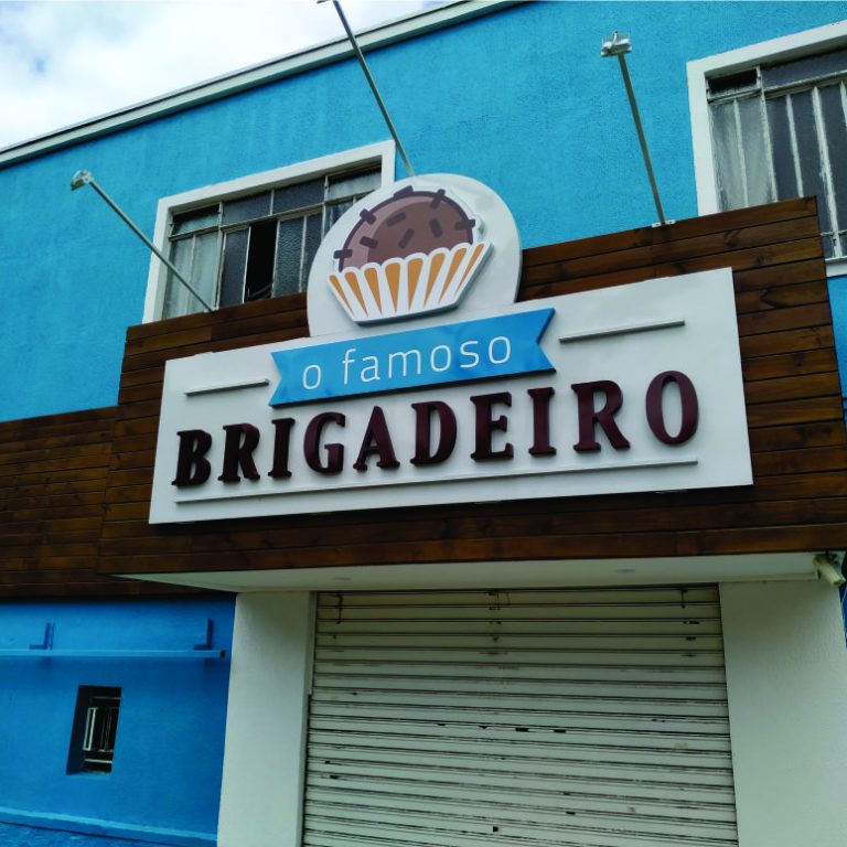 Placas em Curitiba. Placa estrutura em Ferro galvanizado com pintura automotiva, frente em ACM branco com corte especial, sinalização em Letra Caixa alta Brigadeiro. Comunicação Visual é aqui na Comunica Signs.