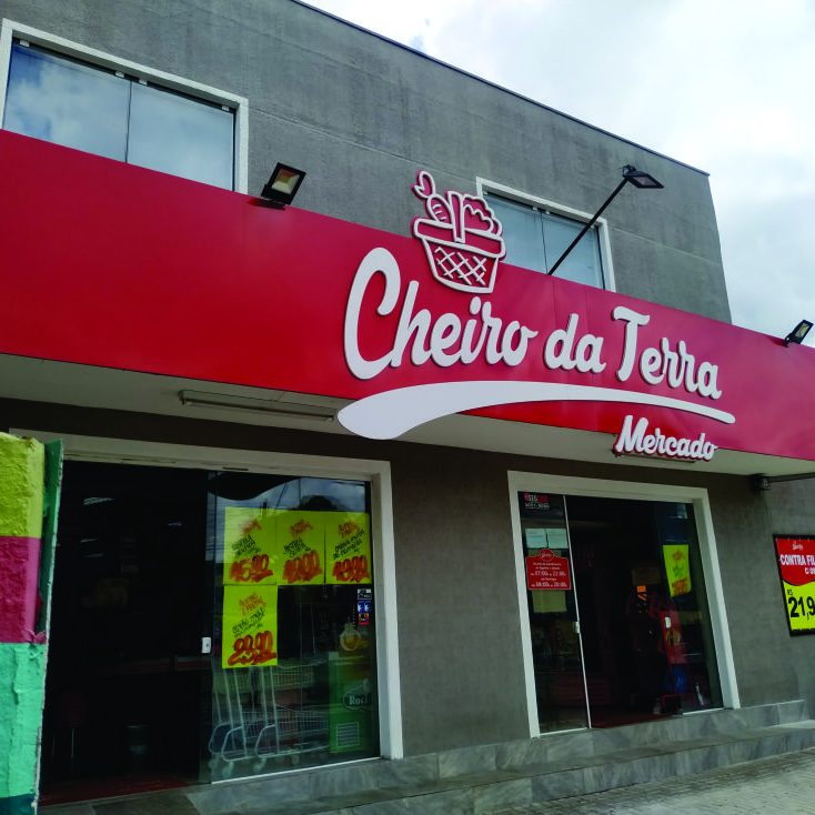 Fachada em ACM. Esta Fachada foi Produzida e instalada pela Comunica Signs. Estrutura em Ferro galvanizado revestida em ACM Vermelho. Sinalização em Letra Caixa Alta PVC Expandido 20mm Branca.