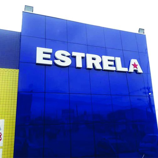 Fachada em Curitiba, Revestimento em ACM azul, com Letra Caixa alta estrela, acabamento pintura automotiva. Fachada é na comunica signs.