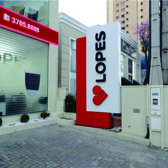 Este lindo totem é um trabalho bem diferenciado, Essa estrutura em Ferro reforçada com ferro 30×30 revestimento em ACM vermelho e branco , e cantoneiras de alumínio . Sinalização Lopes em Letra caixa .