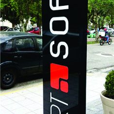 Esse totem Chama atenção pelo seu acabamento com chapas de alumínio, Corte vazado a laser, e cantoneiras deixando a peça ainda mais linda. A Comunica signs oferece para seus clientes oque a de mais moderno em Comunicação visual na atualidade.