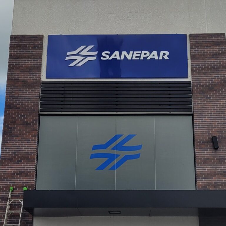 comunicação visual em curitiba, esse trabalha fizemos uma placa em estrutura em ferro com ACM azul com e letra caixa em PVC expandido 20mm.