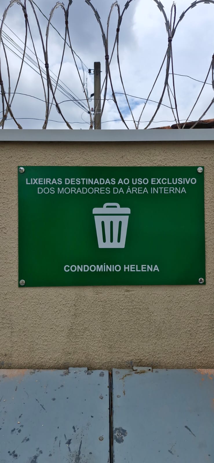 Neste projeto, desenvolvemos uma placa personalizada para condomínio em Curitiba, voltada para sinalização da área de descarte de resíduos. A peça foi produzida com material resistente e instalação segura, ideal para ambientes externos.