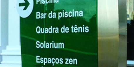 Sinalização em Chapa de ACM verde + recorte em Adesivo.